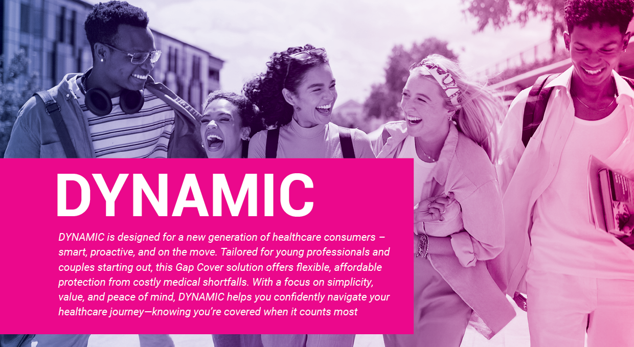 DYNAMIC is designed for a new generation of healthcare consumers – smart, proactive, and on the move. Tailored for young professionals and couples starting out, this Gap Cover solution offers flexible, affordable protection from costly medical shortfalls. With a focus on simplicity, value, and peace of mind, DYNAMIC helps you confidently navigate your healthcare journey—knowing you’re covered when it counts most.